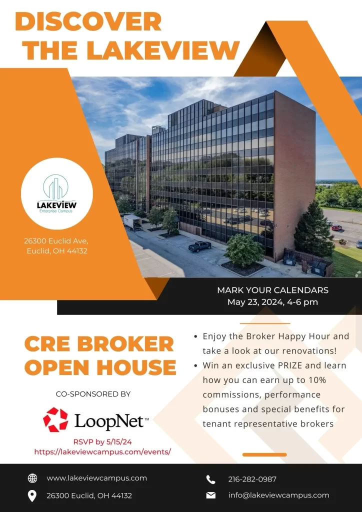 Join us for the Discover the Lakeview Broker OPEN HOUSE event on May 23rd, from 4-6 pm, and be part of an exceptional networking event co-sponsored by LoopNet. Experience the Broker Happy Hour and take a firsthand look at our renovations!